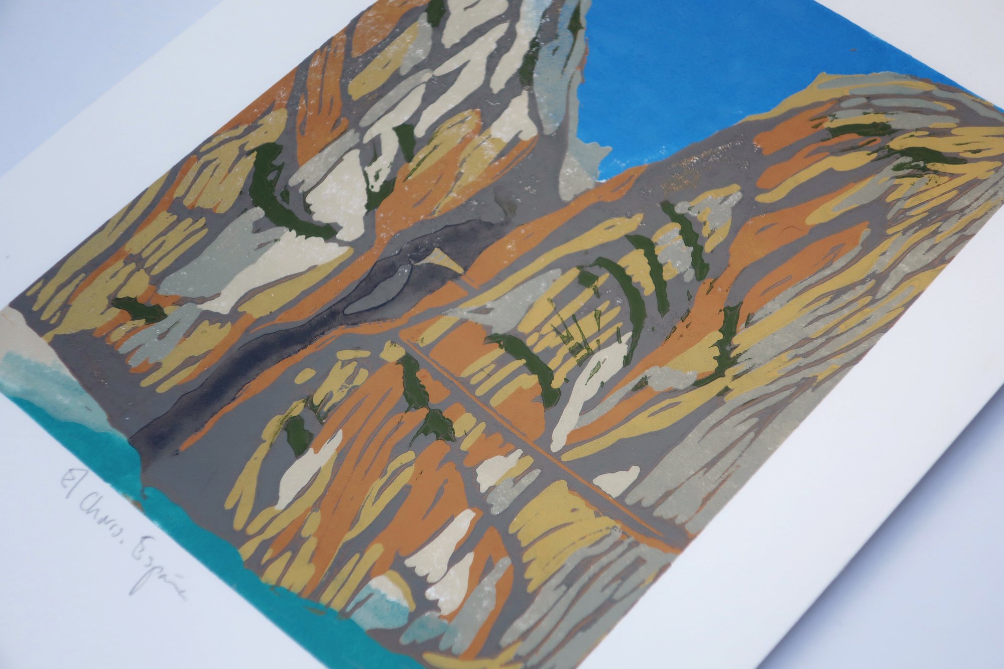 This Limited Edition Handprinted Linocut is based on my original watercolour sketchbook.