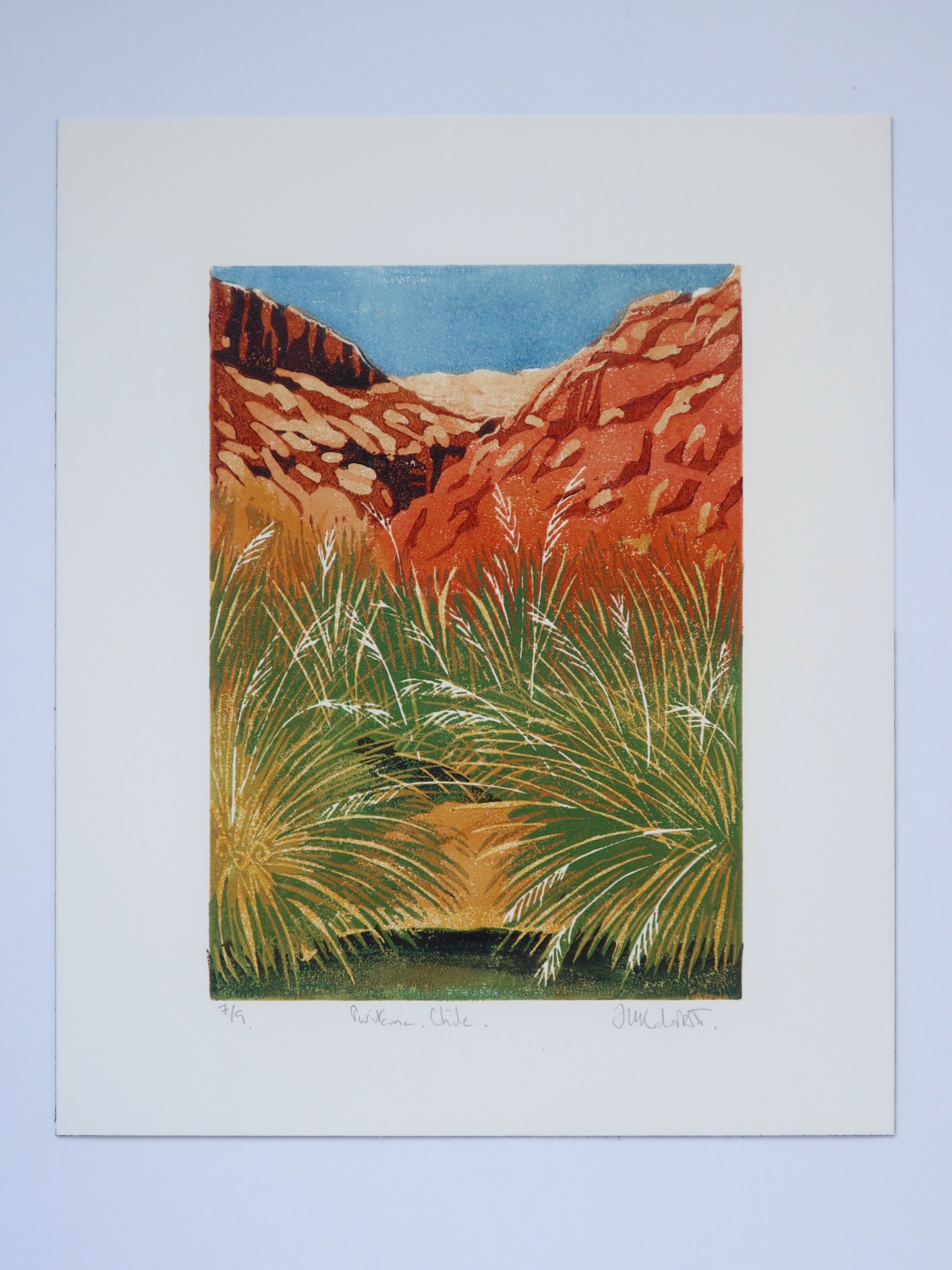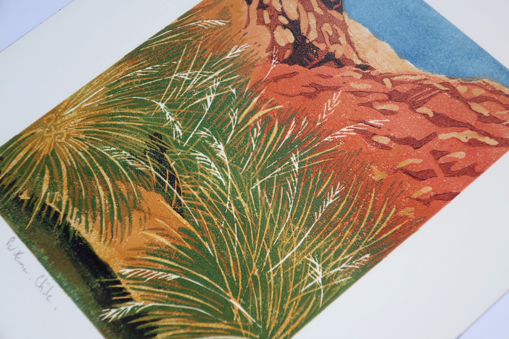 A Limited Edition Handprinted Linocut, inspired by a visit to Chile and based on original drawings in my watercolour sketchbook.