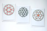 Hand coloured linocut cards inspired by a Spanish cathedral window.